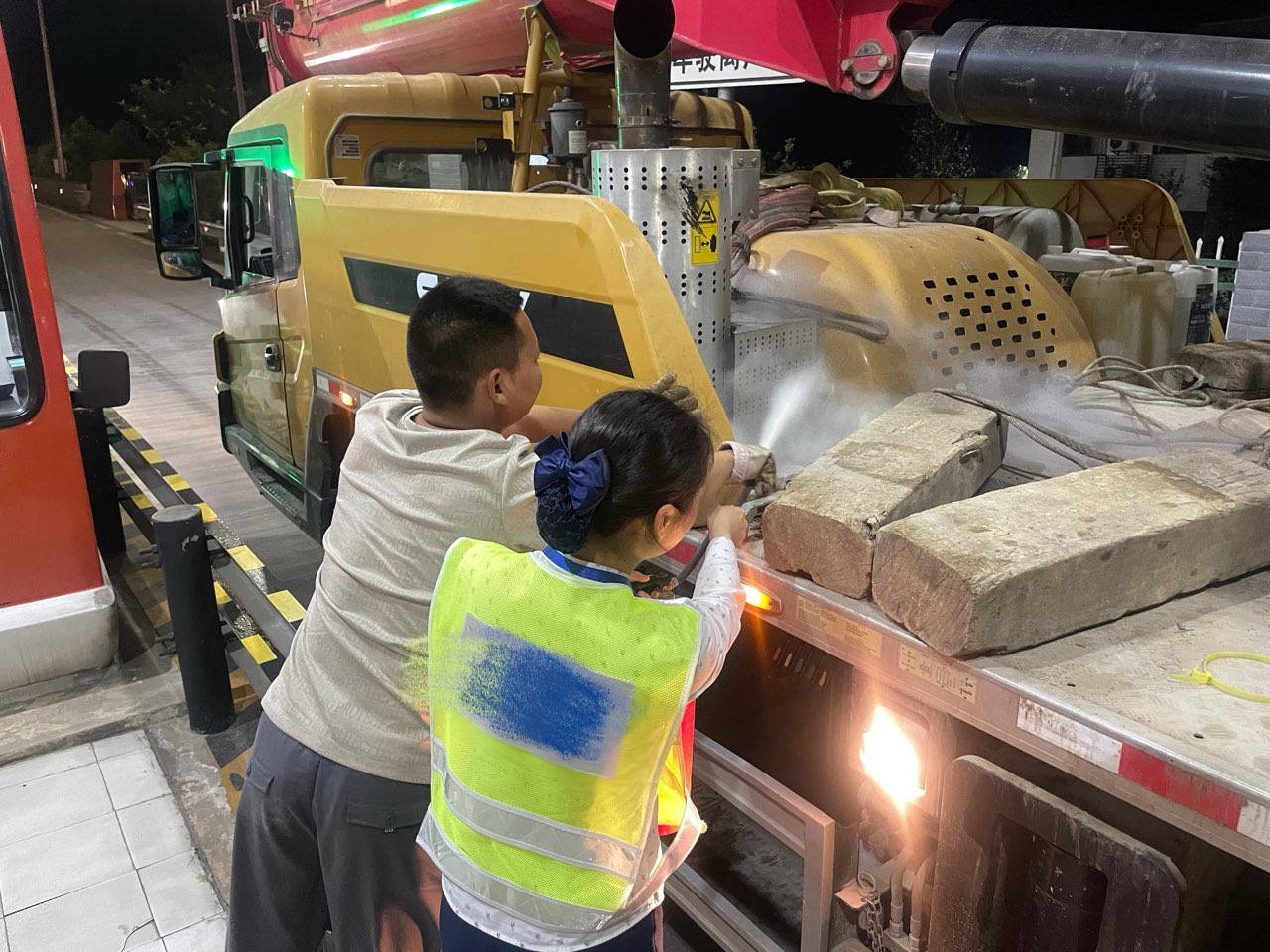 當(dāng)日傍晚,傅家收費(fèi)站入口混合車道迎來(lái)一輛專項(xiàng)作業(yè)車輛,收費(fèi)員在順利完成收費(fèi)流程后,準(zhǔn)備放行時(shí),敏銳地察覺(jué)到該車排氣管有火花閃爍,并伴有焦糊味。收費(fèi)員立即意識(shí)到車輛可能存在起火風(fēng)險(xiǎn)。面對(duì)緊急情況,收費(fèi)員保持冷靜,迅速向司乘發(fā)出停車指令,并立即取用崗?fù)づ缘臏缁鹌?,迅速奔向車輛。
